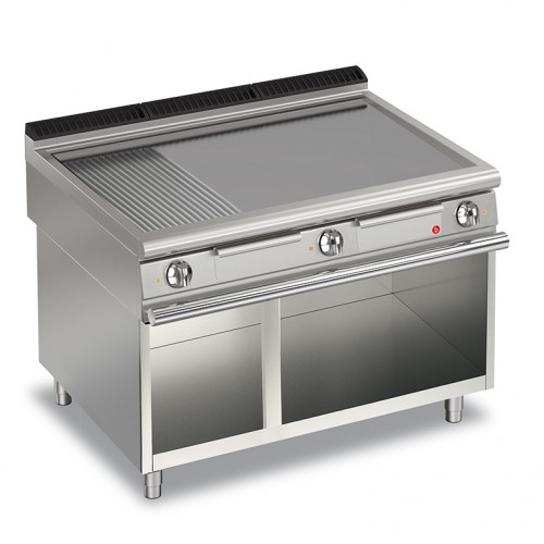 Baron Q90FTV/E1220 szuper elektromos Fry Top, nyitott szekrényen, sima, öntöttvas
