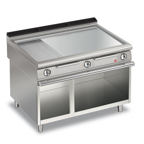 Baron Q90FTV/E1225 szuper elektromos Fry Top, nyitott szekrényen, sima, króm
