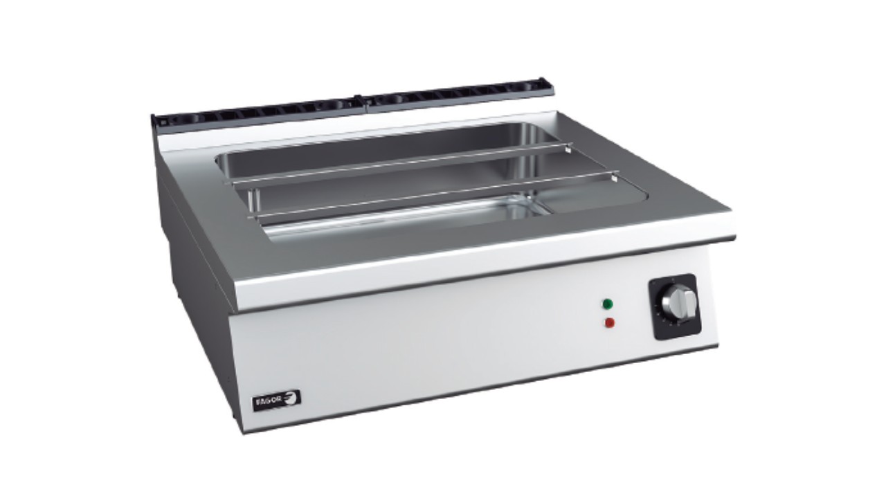 A Fagor BM-E705 egy kompakt, elektromos melegentartó medence, amelyet GN 1/1 méretű edényekhez terveztek. A rozsdamentes acél szerkezet, termosztatikus hőszabályozás és biztonsági termosztát biztosítja a megbízható, higiénikus és energiatakarékos működést. Ideális választás tálalóvonalakhoz, büfékhez és éttermekhez.