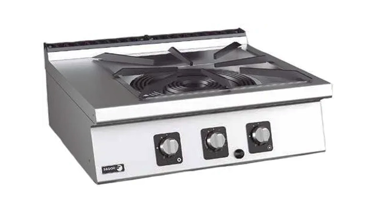 A Fagor C-GP710 egy professzionális gázüzemű paella tűzhely, amelyet kifejezetten nagy átmérőjű edényekhez és egyenletes hőeloszlást igénylő ételekhez terveztek. A négysoros, dupla koronaégő nyílt lánggal működik, így az edény teljes alját lefedi – ideális paella, egytálételek és látványkonyhai felhasználásra.