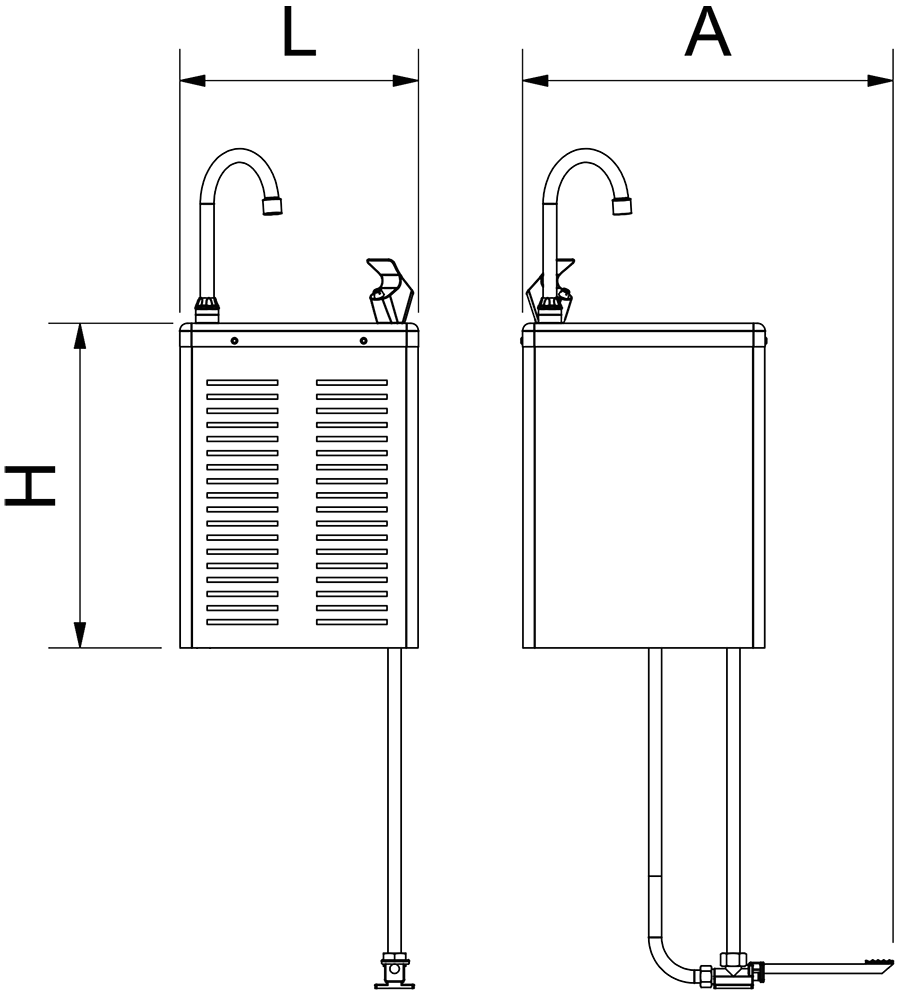 Fali, hűtött ivókút – Cold+ pedállal működtethető csappal