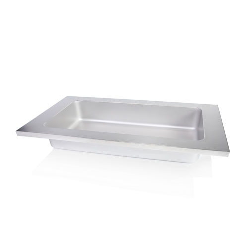 Mélyhúzással gyártott, fedlapba hegesztve, matt felületű, GN méretezés, medencefenék lejtéssel kialakítva, lefolyó perforálás nélkül, munkapultba hegeszthető, anyaga: rozsdamentes acél, származási hely: Törökország.