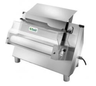 FIMAR FIM42N – egyenes hengeres pizzatészta nyújtógép 42 cm-ig, rozsdamentes acél házzal – ideális kisebb pizzériák és éttermek számára.