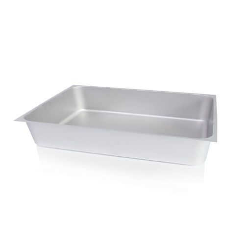 Mélyhúzással gyártott, matt felületű, GN méretezés, medencefenék lejtéssel kialakítva, lefolyó perforálás nélkül, munkapultba hegeszthető, anyaga: rozsdamentes acél, származási hely: Törökország.