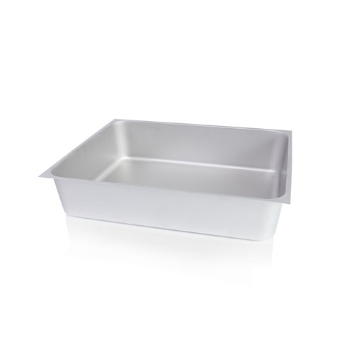Mélyhúzással gyártott, matt felületű, GN méretezés, medencefenék lejtéssel kialakítva, lefolyó perforálás nélkül, munkapultba hegeszthető, anyaga: rozsdamentes acél, származási hely: Törökország.