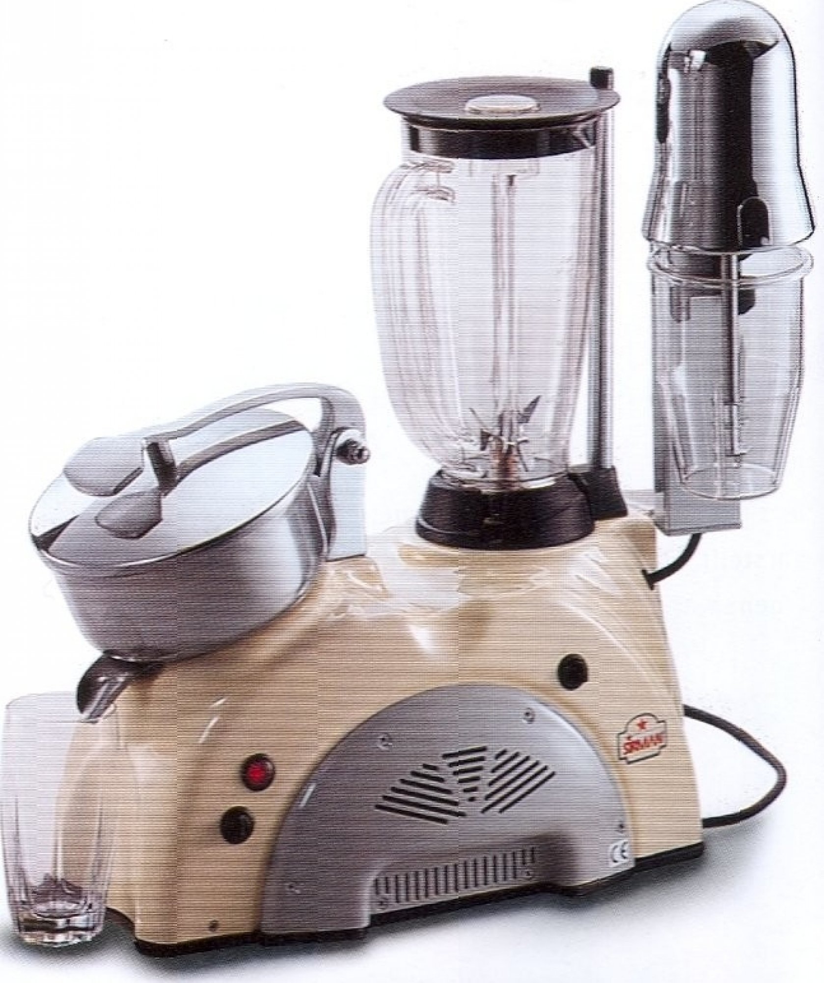 Sirman MULTIPLO 3S Kombinált bárkészülék, Turmixgép (300 W), citrusprés (150 W) és shaker (70 W) egyben.