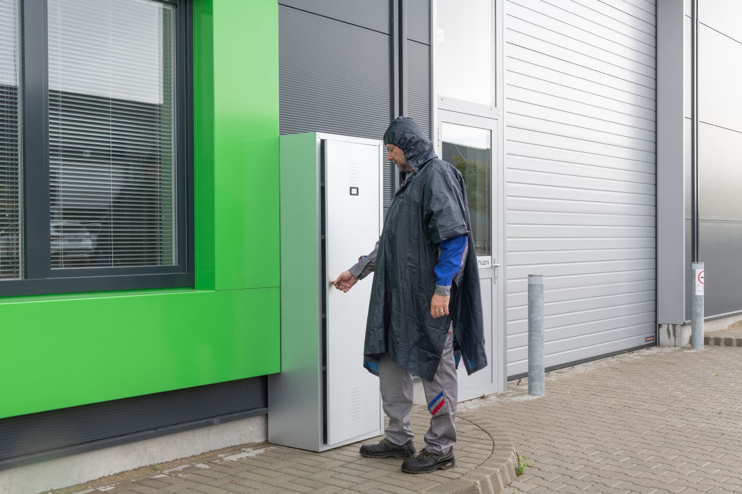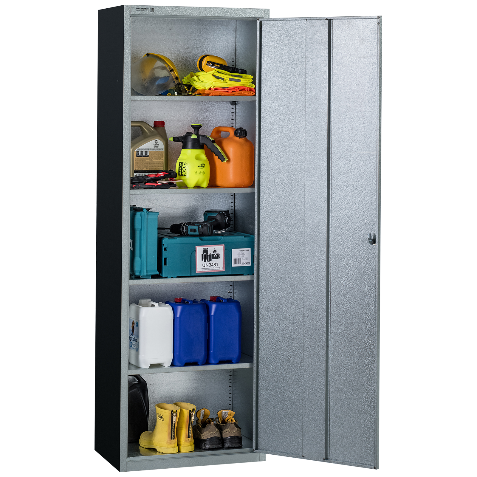 A szekrény I. osztályú alumínium–cink ötvözetből készül, amely kiváló ellenállást biztosít nedvességgel, csapadékkal és hőmérséklet-ingadozással szemben. Könnyű, mégis stabil szerkezete miatt egyszerűen mozgatható és telepíthető, miközben megbízható tárolási megoldást nyújt hosszú távon.